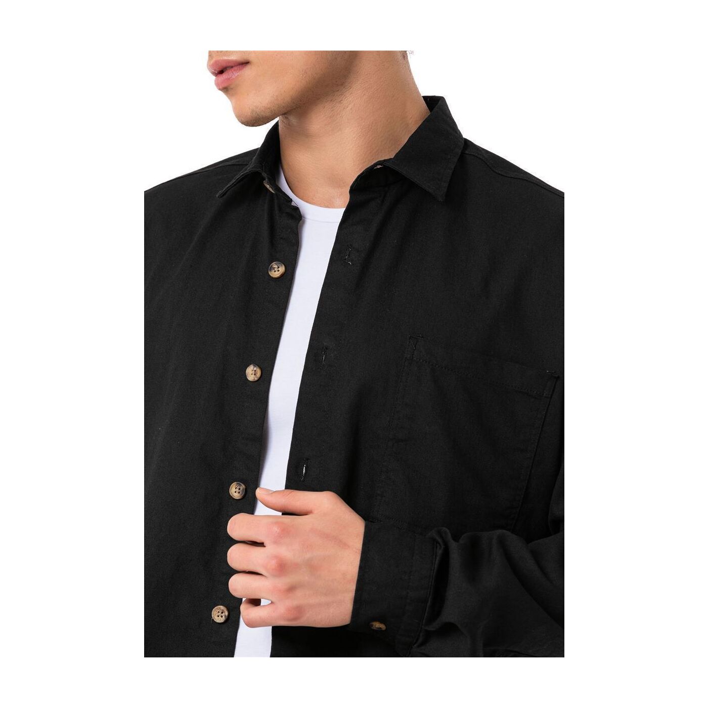 - Kragentyp: eckiger Tab / Klappkragen / Kentkragen / Umlegekragen